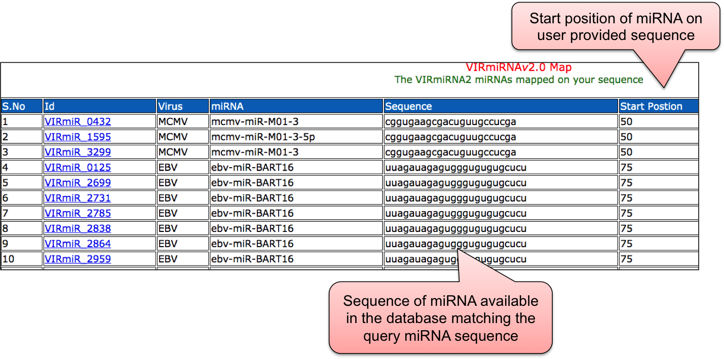 In Map tool, user can map given miRNA with those in our VIRmiRNA sub-database.