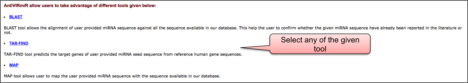 AntiVIRmiR allow users to take advantage of different tools given below: