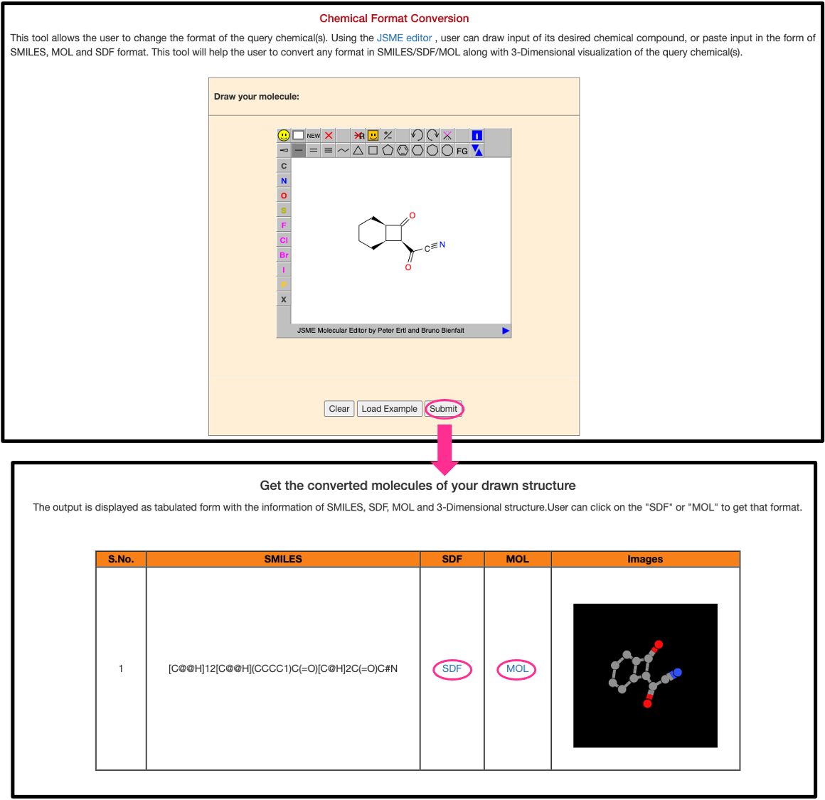 The "conversion tool" would be helpful to the users to convert the chemicals in SDF/MOL/SMILES format with the input as drawing of the chemical structure.