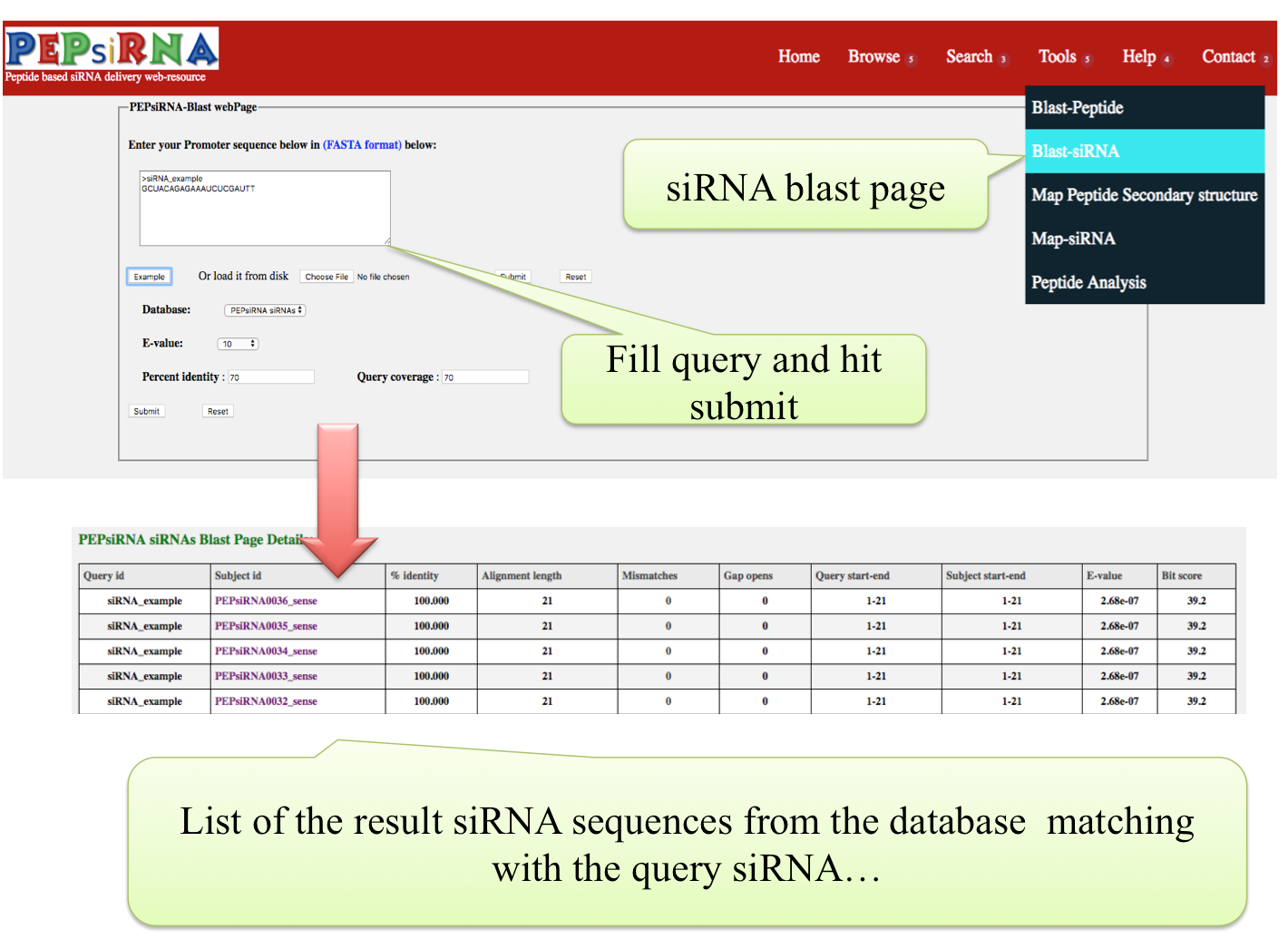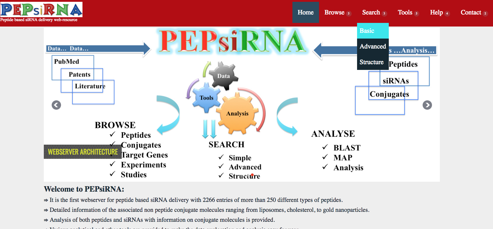 We have tried to develop the PEPsiRNA webserver in easy and user friendly way as seen from the index or home page.